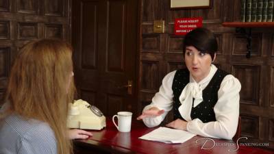 The sadistic landlord elects to call in Bunnie’s mother – who is of course the real tenant of the property – and have her remind the wayward young woman of what used to keep her so very beautifully in line. Using a supple leather strap her mother beats her first over her tights, then over her knickers, and then right on her pinkening bare bottom. Bunnie kicks and gasps, but ultimately she seems to understand that this is all she can do to make up for her misdeeds.